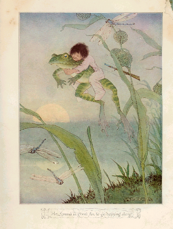 Billy had never seen anything so funny as the very wide mouth and puffy body of this great, clumsy Frog; he wanted to laugh, but thought it much safer not to, though he had his popgun, with which to defend himself if necessary.