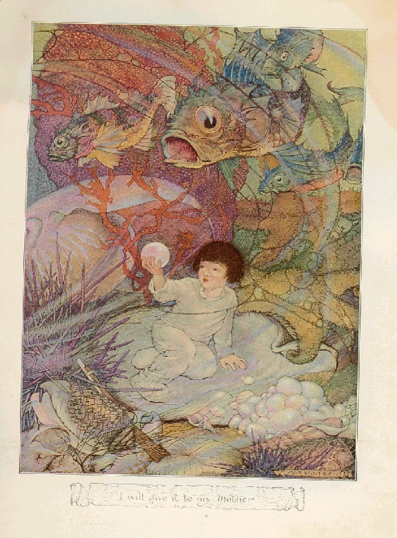 the glad moment had arrived to give it to her. Where could she be? What? ‘Was that her voice calling him? Yes, there was no mistaking it. Billy ran to her, and she received him with a Mother’s tenderness. But she did not seem to realize what wonderful things had happened to Billy. Of course his story interested her, but she was no more excited about seeing him than if he had just come downstairs that morning in his pajamas. And as for the pearl, well, she thought it very beautiful indeed, and told Billy so. Yet, let me tell you, right down in her own heart she was quite sure it was just a stone.